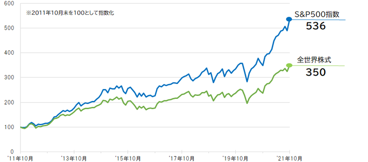 | 投資対象 | 全世界(先進国+新興国) | 米国大型株中心 |