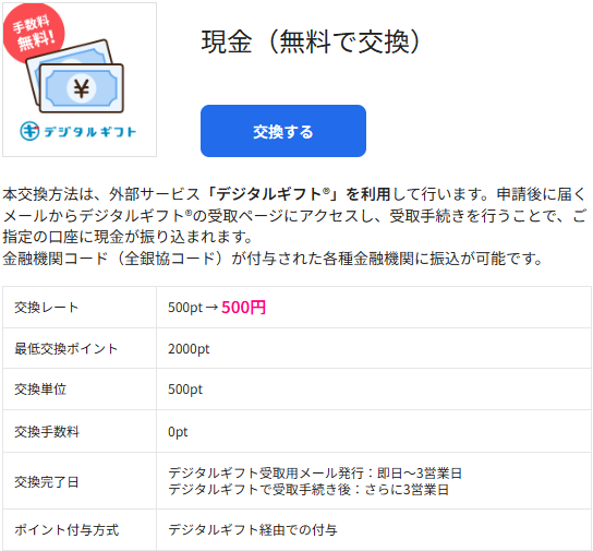 さらに、期間限定で交換レートが増えるキャンペーンがあり、同じptでも多く受け取れることがあります。
