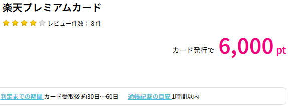 ハピタスに掲載されている楽天プレミアムカード広告のポイント獲得条件は以下の通りです。
