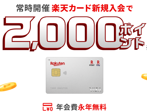 新規で楽天カードを作ることで、楽天カード入会特典として2,000~10,000ポイント以上の楽天ポイントがもらえるキャンペーンが開催されることがあります。