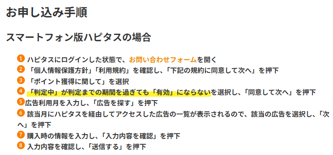 トラッキング漏れが発生すると、広告主やハピタス側で利用履歴が確認できず、ポイント付与の対象外となるケースが多いです。