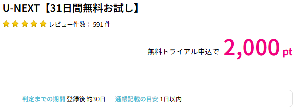 ※初めて「U-NEXT」に申込みされる方のみ対象【ポイント却下条件】