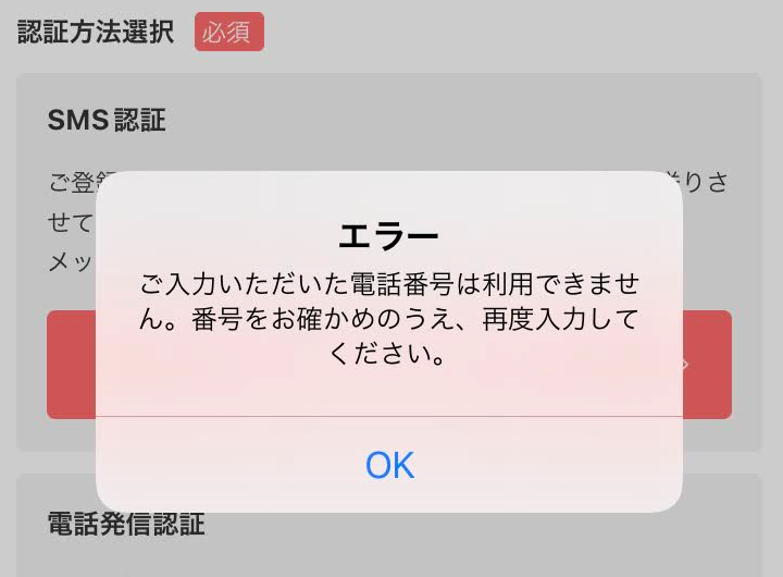 電話番号認証では、SMS受信制限や番号の入力ミスやすでに別アカウントで使われている番号なども確認が必要です。
