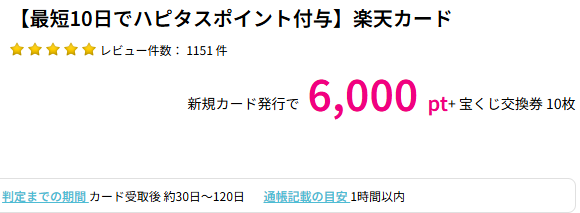 ポイントサイトを経由して楽天カードをつくることで、1,000~10,000円分程のポイントがもらえるので、楽天カード発行とセットでポイントサイトを経由させましょう。(ポイントサイトは登録利用無料)