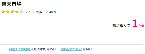 ポイントサイトを経由して楽天市場で買い物をすることで、買い物金額の1%分のポイントが付与されます。