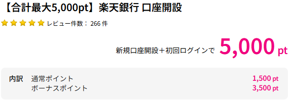 楽天銀行口座を新規で開設後にログインをすればポイント獲得条件を満たすことができます。