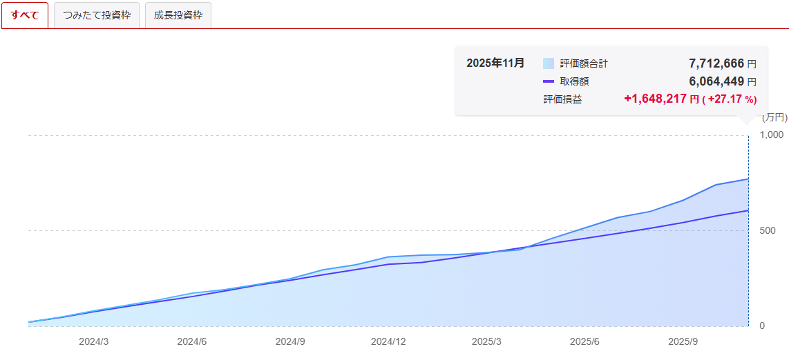 | 合計 | 6,063,884円 | +1,648,218円 | +27.17% |
