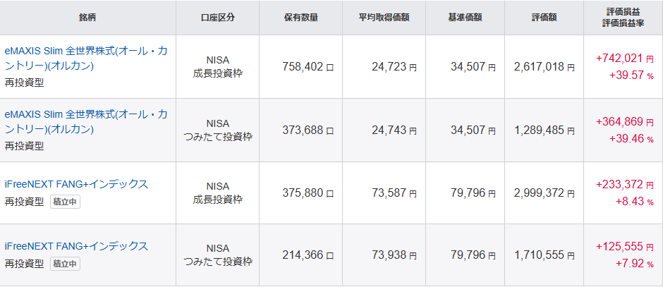2024年は『成長投資枠』と『つみたて投資枠』ともにeMAXIS Slim 全世界株式(オール・カントリー)に投資をしてきました。