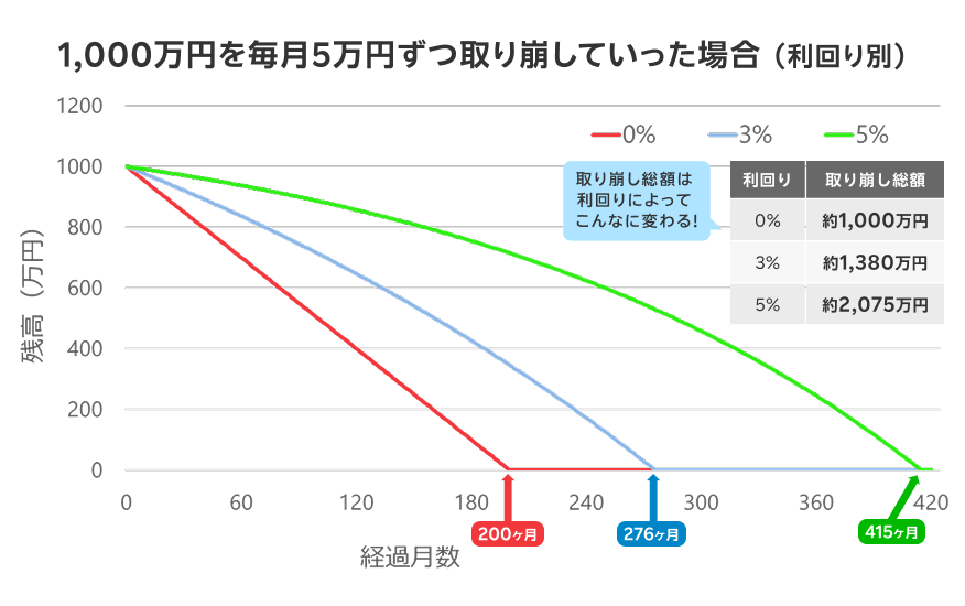 | 月数万円の副収入あり | 大きく下がる | 取り崩しが減り暴落耐性が上がる |