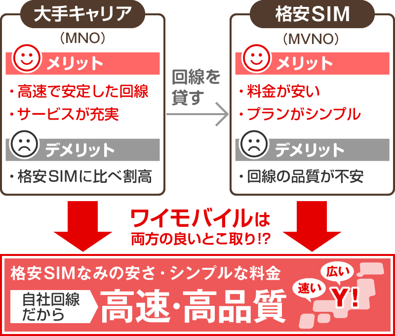 ワイモバイル(Y!mobile)は、ソフトバンクが運営するモバイル事業の格安SIMサービスです。